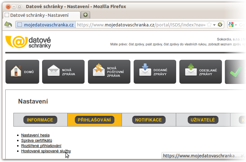 Pro povolení služby pro Vaší datovou schránku postupujte následovně: